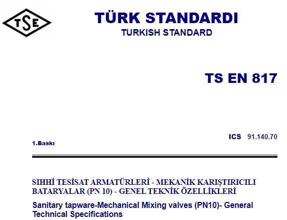 TS EN 817 standardı, sıhhi tesisat armatürleri alanında mekanik karıştırıcılı bataryaların genel teknik özelliklerini kapsar.